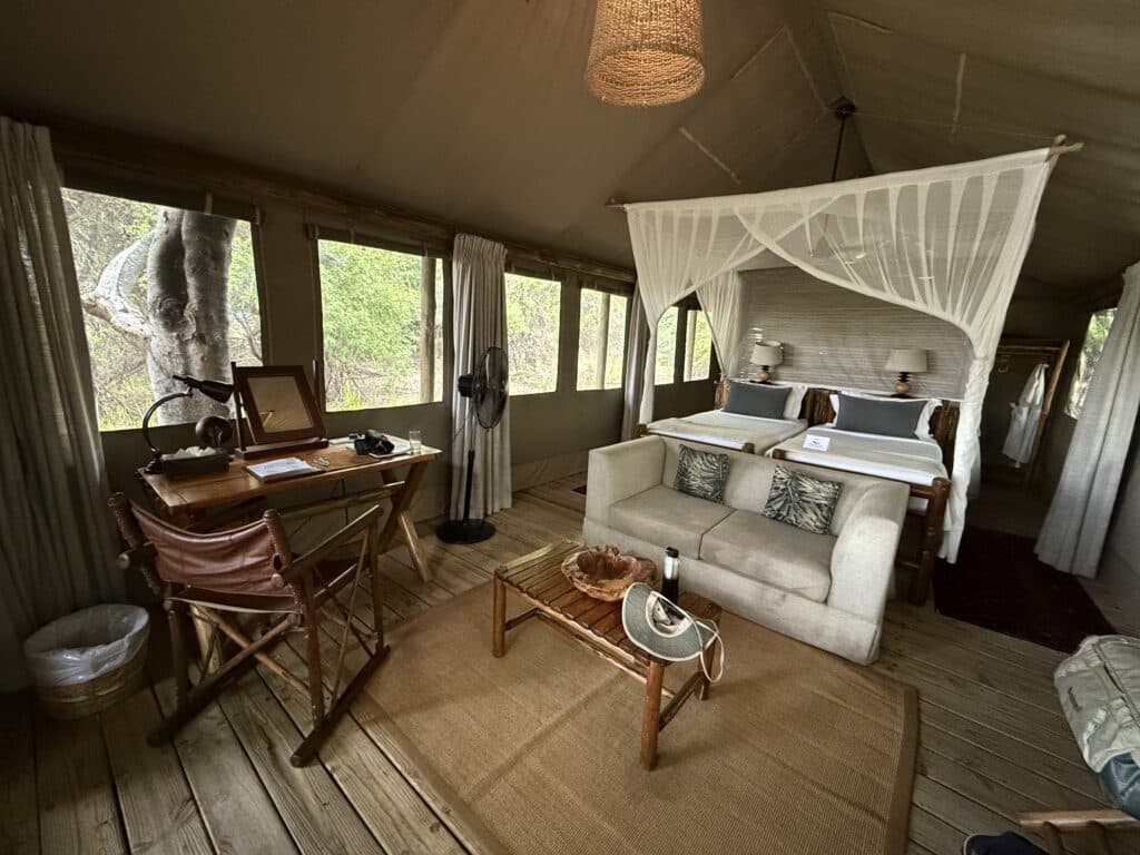 Packing is part of the anticipation, blending practicality with style. Neutral layers are essential: lightweight pieces for warm days, cozy sweaters and jackets for crisp winter mornings, and waterproof gear for the green season when the bush comes alive with rain. Because bush flights require soft-sided duffels, careful packing ensures ease of travel and compliance. I curate detailed suggestions so guests arrive not only prepared, but polished and ready to embrace every moment of adventure. See my personal Safari Packing Suggestions